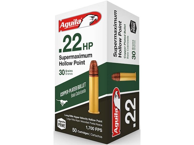 Aguila Super Maximum Ammunition 22 Long Rifle 30 Grain Hyper Velocity Plated Lead Hollow Point