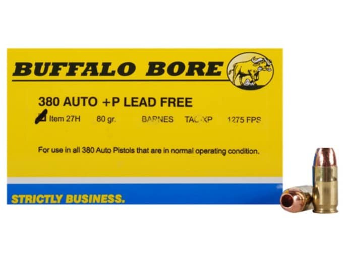 Buffalo Bore Ammunition 380 ACP +P 80 Grain Barnes TAC-XP Hollow Point Lead-Free Box of 20