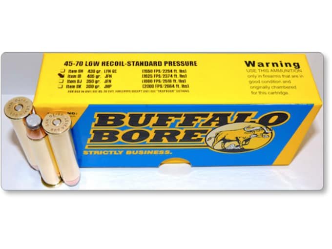 Buffalo Bore Ammunition 45-70 Government 405 Grain Jacketed Flat Nose Low Recoil Standard Pressure Full Power Box of 20