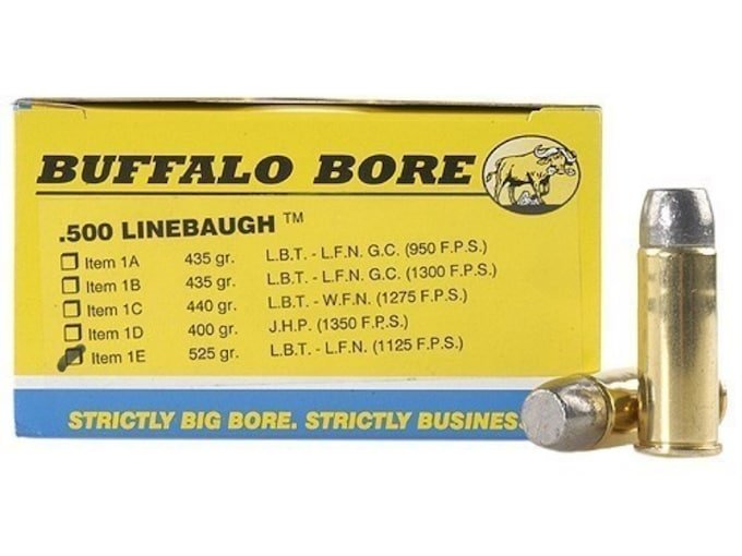 Buffalo Bore Ammunition 500 Linebaugh 525 Grain Lead Flat Nose Box of 20