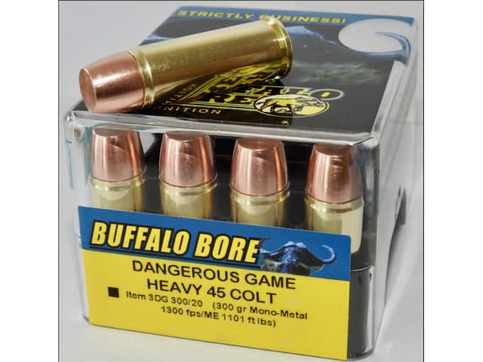 Buffalo Bore Dangerous Game Ammunition 45 Colt (Long Colt) +P 300 Grain Lehigh Mono-Metal Lead-Free Box of 20