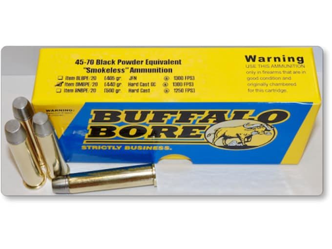 Buffalo Bore Smokeless Blackpowder Equivalent Ammunition 45-70 Government 440 Grain Hard Cast Lead Flat Nose Gas Check Box of 20