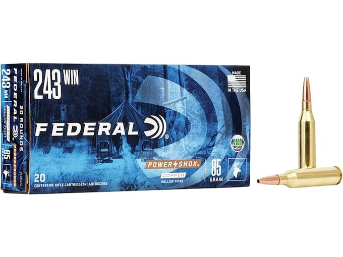 Be the first to review “Federal Power-Shok Ammunition 243 Winchester 85 Grain Copper Hollow Point Lead-Free Box of 20” Cancel reply