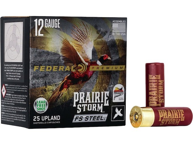 Pheasants are fast, tough birds. That’s why Federal Premium combined the FLITECONTROL wad and FLITESTOPPER pellet technologies to create Prairie Storm FS Steel. It delivers consistent patterns that put more than 75 percent of their pellets in a 30-inch circle at 40 yards, as well as energy similar to the most popular lead loads. FeaturesHigh velocityComparable 40-yard velocity and pellet energy to standard lead loadsFLITECONTROL wad and payload mix of 50 percent standard steel and 50 percent FLITESTOPPER steel optimizes patternsWad-shot system improves the lethality of steel