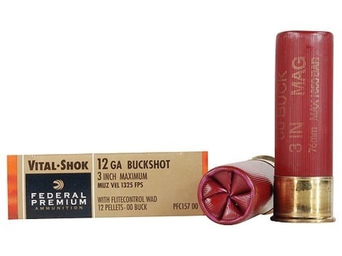 Federal Premium Vital-Shok Ammunition 12 Gauge 3″ Buffered 00 Copper Plated Buckshot 12 Pellets Flitecontrol Wad