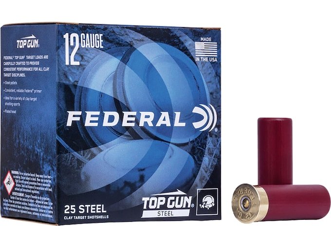 Shatter clay targets with a non-lead payload. Federal Top Gun Steel Target Ammunition gives high-volume target shooters solid performance at a reasonable price. Its high-quality steel shot produces consistent clay-breaking patterns. FeaturesConsistent, reliable Federal primerEight-segment crimpUnique wad column for consistent patterns