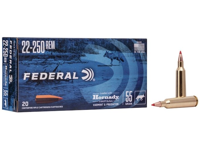Federal Varmint & Predator Ammunition 22-250 Remington 55 Grain Hornady V-MAX