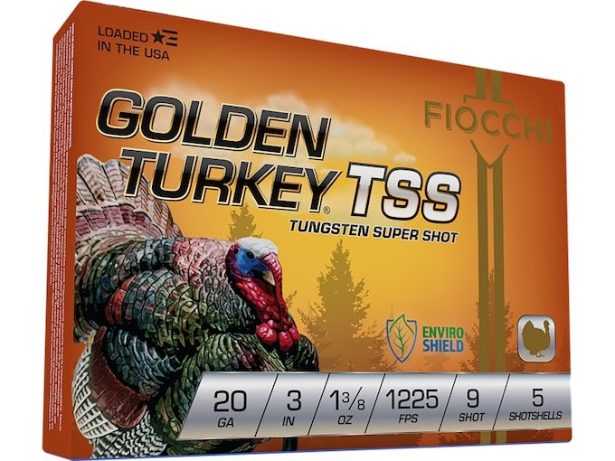Fiocchi Golden Turkey TSS Ammunition 20 Gauge 3″ 1-3/8 oz #9 Non-Toxic Tungsten Super Shot Box of 5
