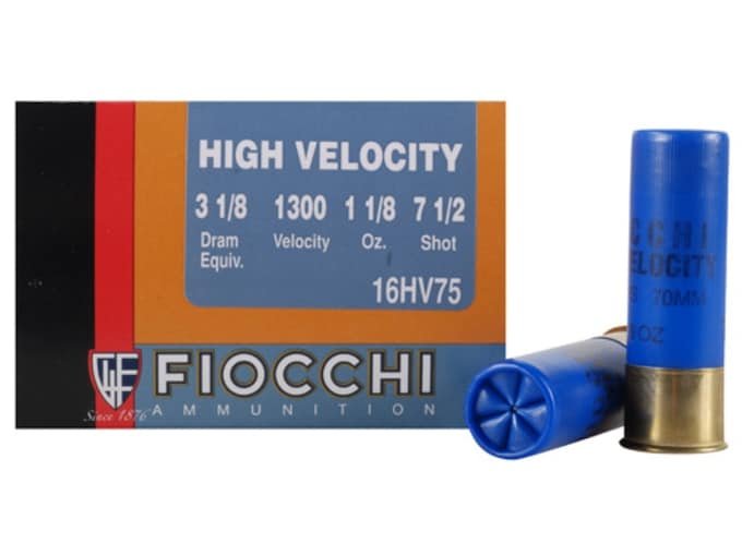 Fiocchi High Velocity Ammunition 16 Gauge 2-3/4″ 1-1/8 oz #7-1/2 Chilled Lead Shot Box of 25