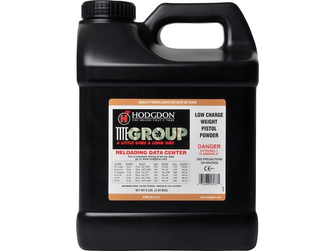 TITEGROUP is a double base, spherical propellant that was designed for accuracy. Because of the unique design, this powder provides flawless ignition with all types of primers including the lead-free versions. Unlike pistol powders of the past, powder position in large cases (45 Colt, 357 Magnum and others) has virtually no effect on velocity and performance. Cowboy Action, Bullseye and Combat Shooters should love this one! TITEGROUP has it all, low charge weight, clean burning, mild muzzle report and superb, uniform ballistics.