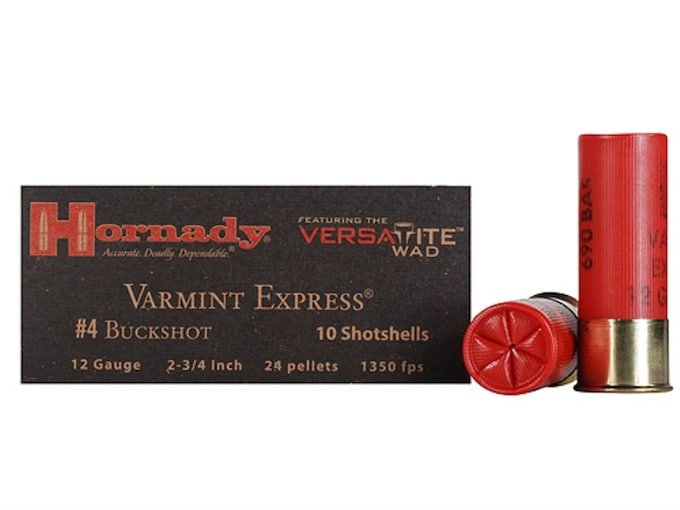 Hornady Varmint Express Buckshot Ammunition 12 Gauge 2-3/4″ #4 Buckshot 24 Pellets Box of 10