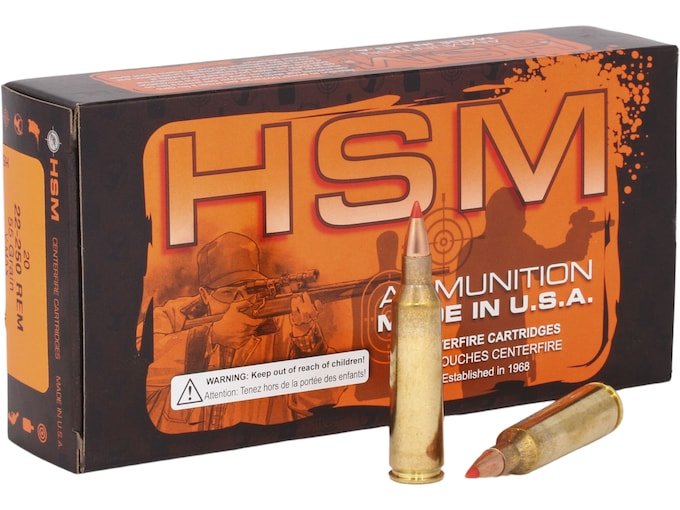 HSM Ammunition 22-250 Remington 55 Grain Hornady V-Max Polymer Tip Box of 20