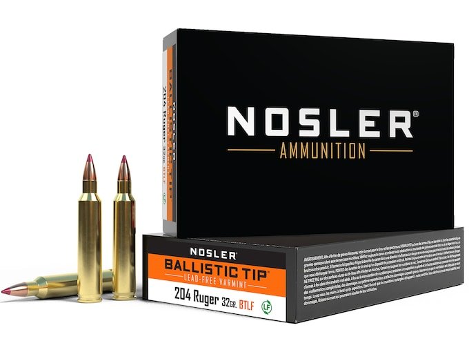 Nosler BT Varmint Ammunition 204 Ruger 32 Grain Ballistic Tip Varmint Lead-Free Box of 20
