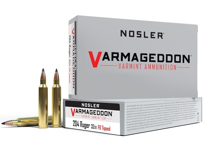 Nosler Varmageddon Ammunition 204 Ruger 32 Grain Tipped Flat Base Box of 20
