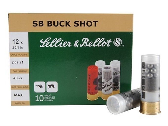 Sellier & Bellot Ammunition 12 Gauge 2-3/4″ #4 Buckshot 21 Pellets Box of 10