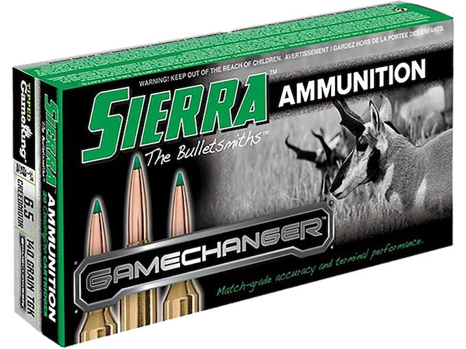 The 6.5 Creedmoor is a shortened and improved 30 TC cartridge case that was inspired by the .308 Winchester design. This short-action design was created to maximize case capacity and a wide range of loading lengths, while still fitting in standard short-action magazines. The light recoil and adaptability of the efficient 6.5 Creedmoor cartridge has already proven itself in high power, precision rifle series and benchrest competitions. Couple that with the 130-grain Sierra GameChanger bullet with its .510 BC and you get a flat shooting, accurate cartridge with excellent terminal performance suitable for deer, antelope and other similar-sized game. The Sierra GameChanger hunting bullet is the perfect combination of Sierra’s legendary match accuracy coupled with deadly penetration. Sierra re-engineered their legendary MatchKing bullet into a hollow point design for quick expansion and fitted it with a transparent green tip for ballistic uniformity. Inside, the GameChanger features a unique construction that utilizes a special lead alloy surrounded by a tough copper jacket that delivers excellent penetration and expansion at a variety of ranges. It’s a GameChanger on any hunt! This ammunition is new production, non-corrosive, in boxer primed, reloadable brass cases.FeaturesOptimal jacket wall thickness controls expansion and retains weightOpen pocket under the polymer tip expands lead core instantly on impactTuned ogive for industry-leading BCBoat tail design for stable flight and accuracy
