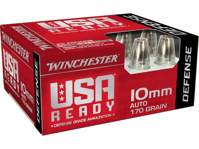 Winchester USA Ready Defense Ammunition 10mm Auto 170 Grain Jacketed Hollow Point Box of 20