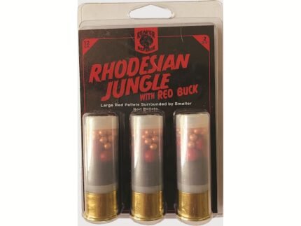 These Reaper Defense 12 gauge Rhodesian Jungle Red rounds contain large red pellets and small pellets, creating a staggering combination of heavy-hitting